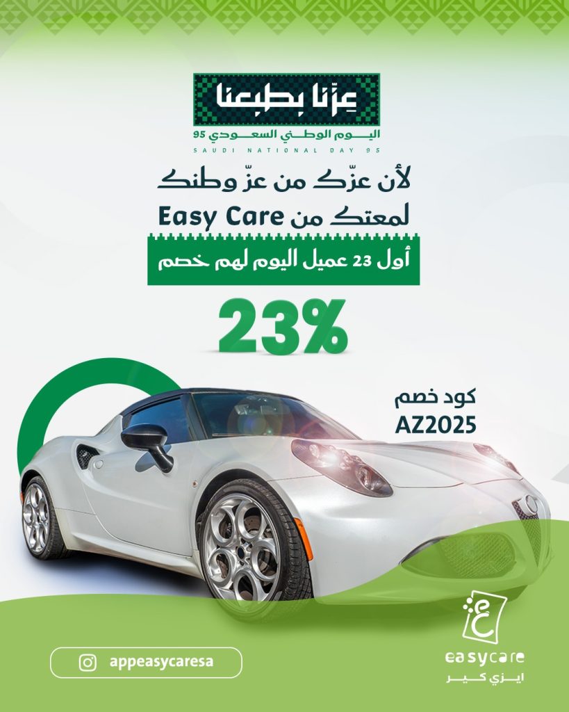 استخدم كود Az2025 عند الطلب من تطبيق إيزي كير وخلي سيارتك تلمع كأنها توها من الوكالة.